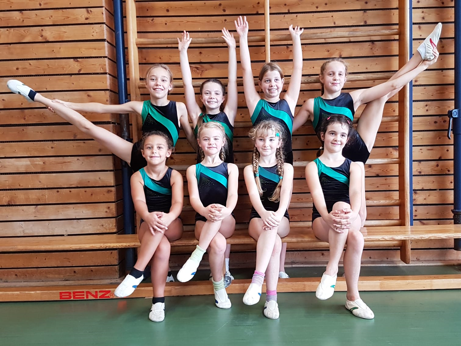 Am verregneten Samstagmittag hieß es für unsere 7- bis 9-jährigen „Minis“ ab an die Geräte. Den Turnerinnen war die Nervosität anzumerken, war es doch für die meisten erst der zweite Wettkampf. Und auch lange Wartezeiten und Pausen zwischen den Geräten, die dem großen Teilnehmerfeld geschuldet waren, brachte Unruhe in den Wettkampf. So stand das Gemeinschaftsgefühl und die Wettkampferfahrung im Vordergrund. Als jüngste Mannschaft im Starterfeld der F/E-Jugend konnten die Mädchen aber mit zwar etwas leichteren, aber gut geturnten Übungen ein ordentliches Mannschaftsergebnis erzielen und erreichten den 7. Platz.